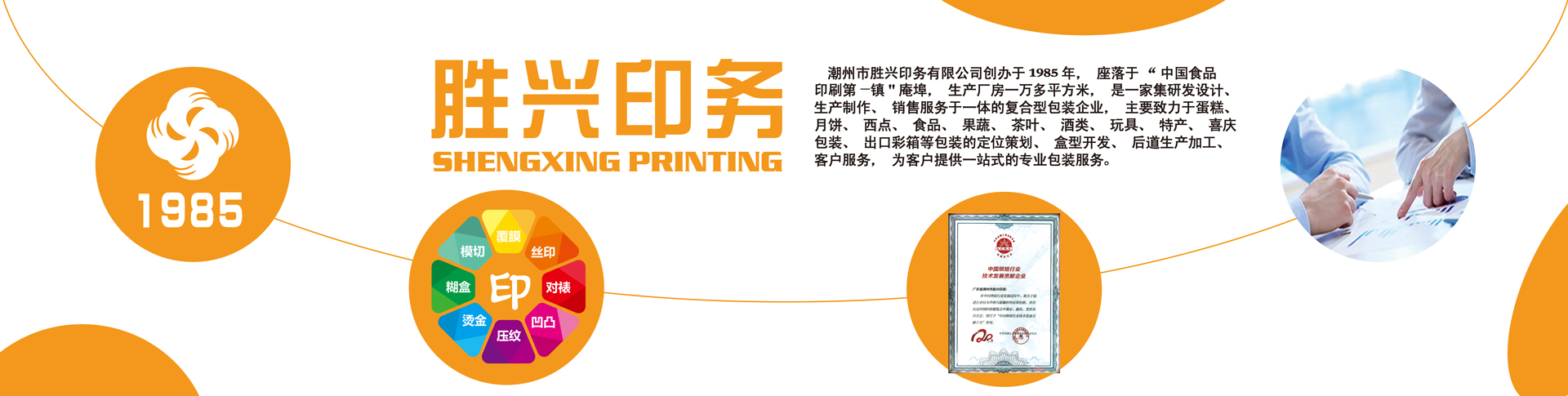 潮州市勝興印務(wù)有限公司創(chuàng)辦于1985年,座落于“中國食品印刷第—鎮(zhèn)”庵埠鎮(zhèn),多年來一直從事包裝印刷行業(yè),擁有德國印刷機(jī)多臺及配套,專業(yè)生產(chǎn)蛋糕包裝、月餅包裝、年畫及各種吉祥物品。勝興的成功,有賴于才干卓越、盡心盡力的員工。本廠注重技術(shù)人才隊伍的建設(shè),擁有技術(shù)性強(qiáng)的各類專業(yè)印刷人員。成熟的生產(chǎn)技術(shù)及優(yōu)質(zhì)的服務(wù)使我們得到了良好的聲譽(yù)和信任。